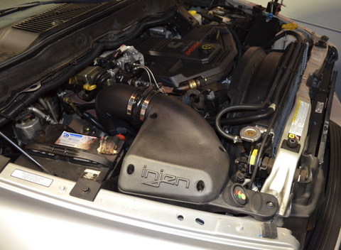 Injen Evolution Air Intake Systems for Diesel Trucks: Injen Evolution Air Intake Systems for Diesel Trucks are Injen's newest product, featuring supernano web DRY filters and massive horsepower and torque gains. The enclosed airbox design offers a clean look and superior heat protection compared to traditional open element systems. Injen Evolution Air Intake System will replace your factory airbox and intake tube. Your existing sensors and hoses will connect to it to ensure a proper fit with no check engine lights. Injen also has taken the guess work out of when it is time to clean your filter with the incorporation of a filter minder gauge. Thanks to the supernano web dry design of the filter, there is no oil to mess with which can cause issues with sensors. With all of these features and the horsepower and torque gains, the choice is simple. The part number for this item is EVO8001 and it fits Mid 2007-2009 Dodge Ram 2500 , 3500 (6.7 Cummins Diesel Models). Injen achieved gains of 20hp and 52lbs of torque during their testing!