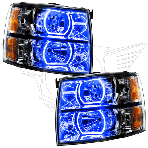 Oracle Halo Head Light Assemblies are the perfect solution for your vehicle. Oracle takes a set of brand new Depo OEM Style Head Lights and installs a set of halo lights in them. You'll enjoy the great looks of halo lights while avoiding most of the extremely tedious installation process. In many cases buying these entire assemblies works out to be less than what a shop would charge to install halo rings into your existing lights and buy the rings! The part number for this item is 8189 and this PAIR of new Head lights fits 2007-2013 Chevy Silverado models. Plasma White 8189-051 Plasma Blue 8189-052 Plasma Red 8189-053 Plasma ColorShift w/ 2.0 Remote 8189-333