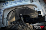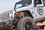 2007-2016 Jeep Wrangler Aluminum Inner Fender Kit by Poison Spyder Customs Remove those ugly and weak plastic inner fenders from your Jeep and replace them with these beautiful pieces from Poison Spyder. Made from CNC laser cut, bead-rolled and brake-formed aluminum, they are built to last on the trail and look great doing it. The part number for this item is Poison Spyder 17-02-080 and it fits 2007-2016 Jeep Wrangler models.