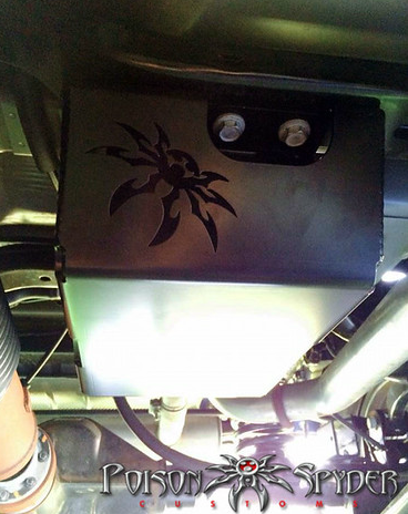 2007-2016 Jeep Wrangler JK Evap Skid by Poison Spyder Customs The plastic evaporative canister located under the Jeep JK's floorboard is an important part of the Jeep's emissions and engine management system. Unfortunately, Jeep placed this unit in a vulnerable spot where it can be damaged or torn off by rocks and other trail obstacles. Poison Spyder's JK Evap Skid solves this issue by protecting the canister with a rugged skid plate. The design of the Poison Spyder JK Evap Skid has been updated to fit all year models and configurations of Jeep Wrangler JK's, from 2007 to 2016, both 2-door and 4-door. The Poison Spyder JK Evap Skid is CNC laser cut and brake-formed from 3/16" plate steel. It completely envelopes the evap canister to protect it from the bottom, front, sides and rear. The front surface of the skid is slanted like a ramp to help slide the Jeep up and over any obstacles that might reach up that far into the Jeep's undercarriage. And of course the skid features the familiar laser cut Spyder symbol. The unique installation method involves removing the stock mounting bracket and securing the canister into the Evap Skid using the provided components and hardware. This provides the added benefit of lifting the canister enough to gain an extra 3/4" of ground clearanceincluding the thickness of the skid itself! The JK Evap Skid comes powder coated satin black, and comes with two complete hardware kits for either 2007-2011 or 2012+ installation, and install instructions. There are several products on the market that deal with the evap canister's vulnerability in different ways. Kits that relocate the canister may result in engine codes that are difficult to diagnose, or may even void your factory warranty. Other skid plate products may protect the bottom of the canister but leave the sides and front vulnerable. Only the Poison Spyder JK Evap Skid keeps the canister in its factory location, with original electrical and vapor connections intact, while fully protecting it from all sides. The part number for this item is Poison Spyder 17-56-012 and it fits 2007-2016 Jeep Wrangler models.