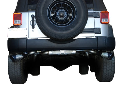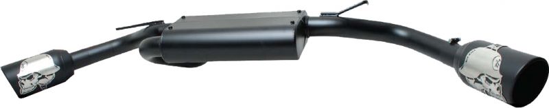 The Metal Mulisha Exhaust System line by Gibson Performance is easily the most unique performance exhaust system line we've seen to date. If the name doesn't already imply it, these systems are mean! Gibson Metal Mulisha Performance Exhaust Systems feature stainless steel piping that is mandrel bent for optimal flow. At the end of the system is a ceramic coated black exhaust tip with the famous skull logo featured on the side. The edge of the Metal Mulisha Exhaust tip is rolled for an improved look. The Gibson Metal Mulisha Performance Exhaust packs a mean sound. You'll gain horsepower and most users report a small increase in fuel economy / efficiency. Gibson Metal Mulisha Exhausts are Made in the USA and backed by a limited lifetime warranty. The part number for this item is 60-0031 and it fits 2007-2016 Jeep Wrangler 3.8 AND 3.6. This is a 2.5" Diameter system with two angled exit 5" tips.