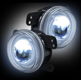 2007-2015 Jeep Wrangler Projector LED Fog Light Assemblies Clear (Pair) by Recon Looking for brighter, problem free, OE fit fog lights for your Wrangler? Recon Projector LED Fog Lights are a plug and play replacement for your factory fog lights. Fog They boast 20 Watts of proprietary CREE XML LED Power meaning they look great and light up the road far better than your factory fog lights. The part number for this item is 264506CL and they fit 2007-2015 Jeep Wranglers.