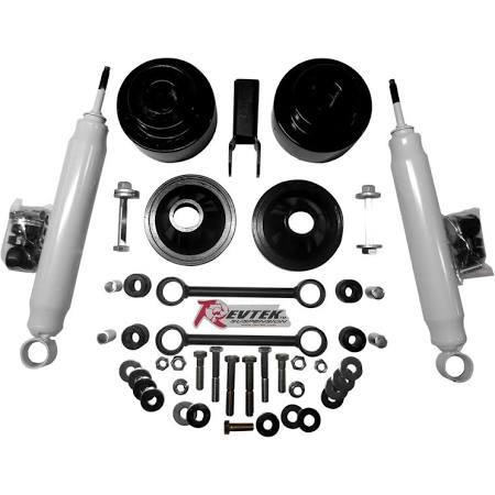 This Lift REQUIRES new longer length front Shocks that are INCLUDED. If you're looking for a nice COMPLETE lift to give you a little extra height, you've come to the right place! RevTek Lift kits are an easy solution that easy to install, safe to use, and best of all, they maintain factory ride quality. Complete system, includes new front shock, coil spacers, new end links, rod ends, and all necessary hardware and instructions All necessary hardware, as well as detailed instructions that include photos. The part number for this RevTek Suspension front lift kit is RevTek 585 and it fits 2007-2017 Jeep Wrangler. It lifts the front of your Jeep up 3" and the rear 2", giving your Jeep a great ride and allowing you to safely run up to a 35" tires.
