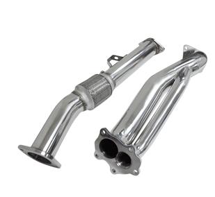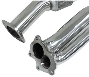 The DC Sports Competition Downpipe for the 2008-2013 Subaru WRX / STI 2.5 Turbo 4Door, 5Door and 2005-2009 Legacy GT 2.5 Turbo deletes the catalytic converter to eliminate restriction in the exhaust path and is dyno tuned to deliver incredible performance gains for your turbocharged Subaru. This Downpipe is made from 100% 304-stainless steel (including the flanges) for the best durability, and is precision bent on CNC mandrel benders using data acquired from a non-contact digitizing scanner which means you get a factory quality fitment. The flanges are CNC machined, to ensure a leak-free seal. The DC Sports state-of-the-art manufacturing process ensures superior quality and a perfect fit for your new DC Sports Downpipe for your 2008-2009 Subaru WRX / STI 2.5 Turbo 4Door, 5Door and 2005-2009 Legacy GT 2.5 Turbo Additional Features: