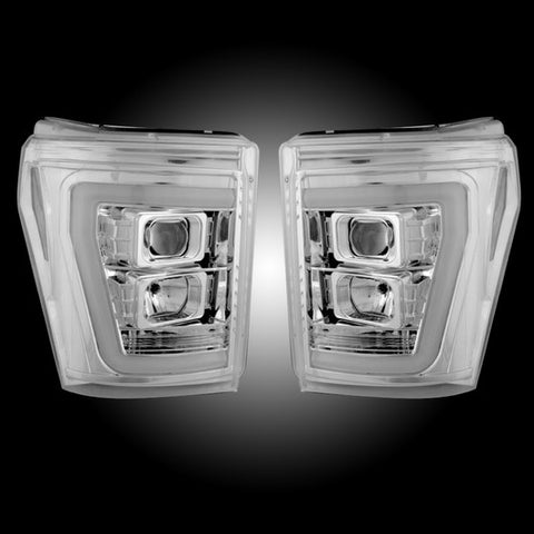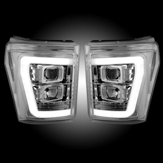Featuring OLED Halos and Daytime Running Lights! Lets face it. Your factory headlights are plain, boring, and begging to be replaced. You see some of these new cars with brilliant looking projector headlights. You wonder why your truck came with the basic run of the mill headlights you ended up with. This is where RECON comes to the rescue. Recon Projector headlights will make your vehicle stand out from the crowd. RECONs Projector Headlights were designed by the engineers at RECON, who are truck enthusiasts themselves. They know what your factory headlight assemblies are lacking, and theyve come up with unique solutions that give a luxuriously sporty look, and set your vehicle apart from the rest of the pack. RECON Projector Headlights are 50 state street legal and manufactured to the highest standards, meaning that you wont be sacrificing durability or functionality when running your RECON Projection Headlights. The part number for these RECON Projector Headlights is 264272CLC and they fit 2008-2016 Ford F-250 F-250 SuperDuty models.