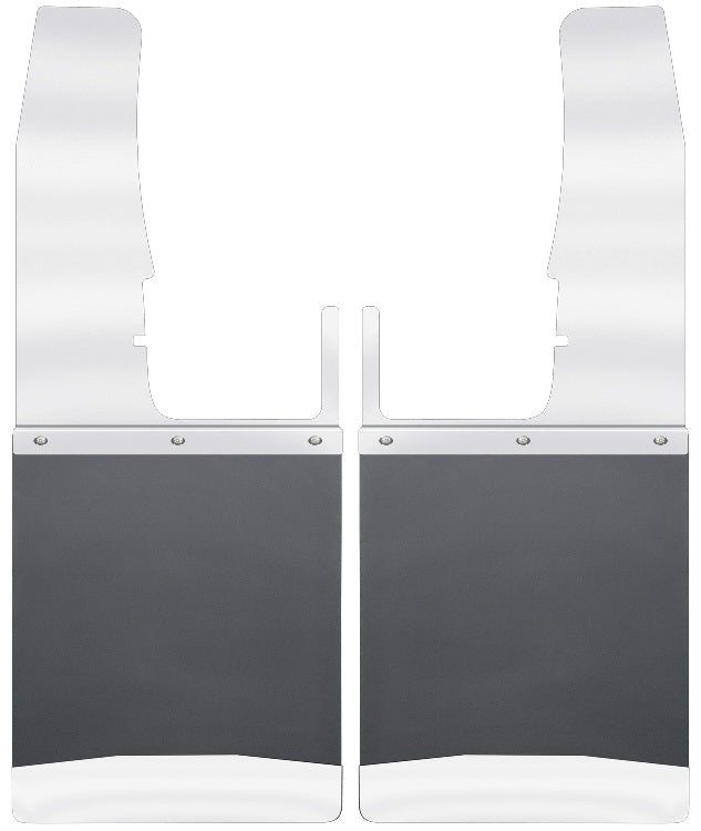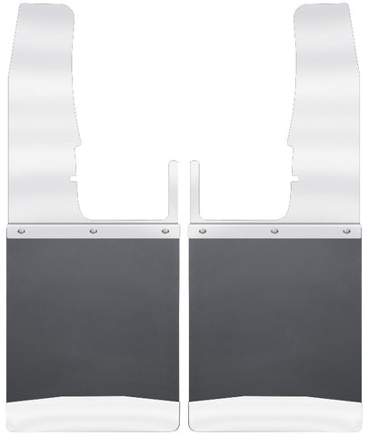 Kickback Mud Flaps by Husky Liners are the perfect solution for your truck, especially if you've installed off road tires and wheels. Husky's KickBack Mud Flaps feature 18 gauge steel bracket that sets the mud flap back specifically to make room for oversized tires and wheels. The added clearance and protection is ideal for lifted off road trucks. Made with Husky Liners Durable AntiSpray material and with either 14 gauge laser cut stainless steel, or a textured matte black finish, these mud flaps are built to get dirty and get the job done. The part number for this item is 17098 and it fits 2009-2016 Dodge Ram 1500 2500 3500 models.