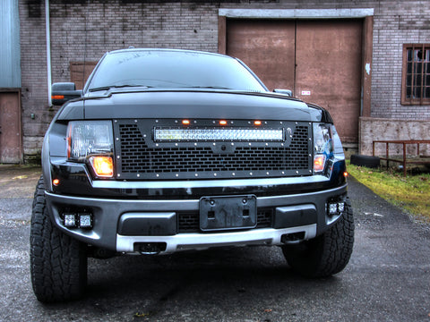 This Rigid Industries replacement grille is designed specifically for the 2010-2014 Ford F150 Raptor (Models w/ Front Camera) and allows for a clean, OE-quality install of Rigid Industries high output LED Light bars. This grille accepts one (1) 30" RDS Series Curved LED light bar (not included). This 2-piece grille is made from laser-cut 304 stainless steel and is assembled using stainless steel button socket head bolts and nyloc nuts - no welds. It features a high quality black powder-coat finish. Installation requires modification to your OEM grille shell. Professional installation is recommended. The part number for this item is Rigid Industries 40571 and 2010-2014 Ford F150 Raptor (Models w/ Front Camera)