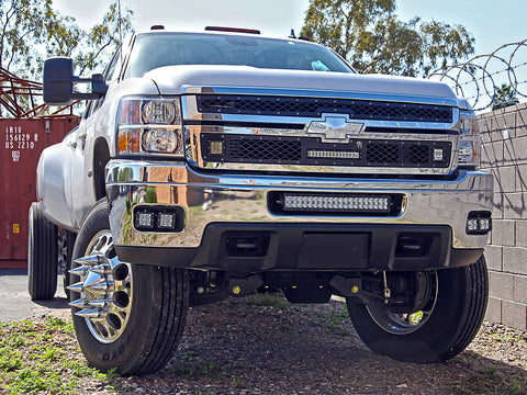2011-2014 Chevy Silverado (2500 3500 Models) LED Fog Light Mounting Brackets by Rigid Industries Use this pair of mounts to mount 4 Rigid Dually or D2 lights in your OE fog light location. Lights are sold separately. Made from 100% stainless steel and coated with a UV + abrasion resistant polyester based coating to ensure years of use in extreme off-road conditions. These mounts are backed by the Rigid limited lifetime warranty. All necessary hardware & mount instructions are included. The part number for this item is Rigid Industries 40338 and it fits 2011-2014 Chevy Silverado (2500 3500 Models).