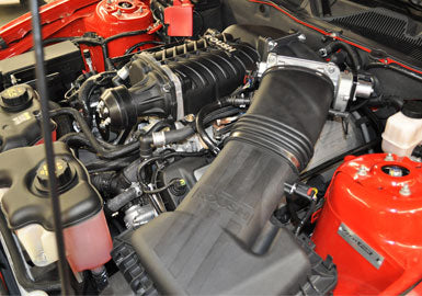2011-2014 Ford Mustang Roush Performance Supercharger (Phase 1 575 HP Calibrated) 50 State Legal Developed in conjunction with Ford Racing, this phase 1 Roush Performance Supercharger kit will turn your mustang into a monster. After installation, your Mustang will produce 575 horsepower and 505lb-ft of torque (155 hp gain and 115 lb-ft gain over stock). The Roush R2300 TVS supercharger is a roots-type positive displacement supercharger that features twin four-lobe rotors that are twisted 160-degrees. By comparison, the original Eaton supercharger rotating assembly featured three lobes twisted 60-degrees. The fourth lobe and the added twist, when combined with newly-redesigned air inlet and outlet ports, provides a long list of benefits including: greatly enhanced thermal efficiency, higher volumetric capacity, higher operating speeds, a smoother, more efficient flow of air into the engine, and improved noise and vibration characteristics. Unlike turbocharging, the Roush R2300 TVS supercharger provides instant throttle response and can generate increased power through the engines entire power band. Your Phase 1 SuperCharger Kit is a complete kit and will come with: