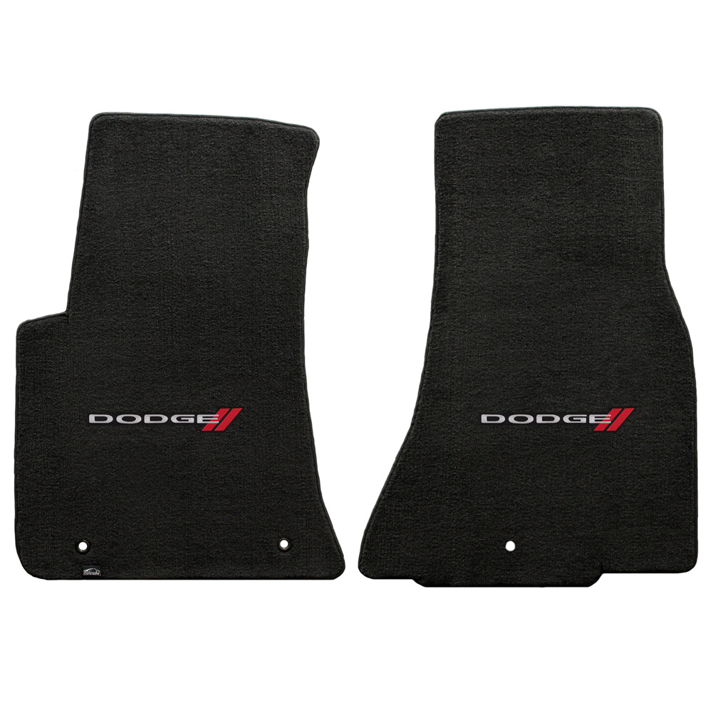 2011-2015 Dodge Challenger "Dodge Logo" Velourtex FRONT Seat Floor Mats (Ebony) by Lloyd Mats