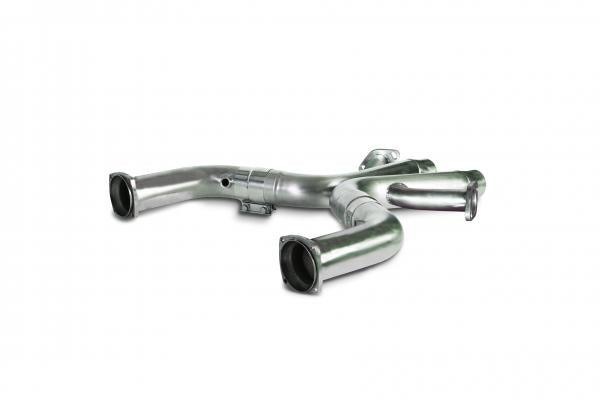 Dynatech SuperMAXX Stainless Steel Race Mid Pipes (Non-Catted) are the perfect item to combine with your Dynatech SuperMAXX Headers for a complete bolt-on installation on your vehicle. Designed for racing and maximum flow, these SuperMAX Intermediate pipes eliminate your catalytic converter(s). They outflow the OEM mid-pipes by a wide margin, resulting in improved power. Designed with high quality "ball and socket" connections, this intermediate pipe will connect directly to your Dynatech SuperMAXX Long Tube Headers and then to your factory or aftermarket cat-back exhaust. The part number for this item is 722-94330 and it fits 2012-2013 Ford Mustang (BOSS 302 5.0 V8 Models) with Dynatech SuperMAXX Long Tube Headers. This item is not designed to bolt up to OEM Exhaust Manifolds, only Dynatech SuperMAXX Headers (Dynatech Header part 722-94310), which is sold separately).