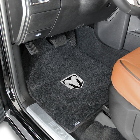 2012.5-2015 Dodge Ram 1500 (Standard Cab) "Silver RAM Logo" Ultimats FRONT Seat Floor Mats (Ebony) by Lloyd Mats