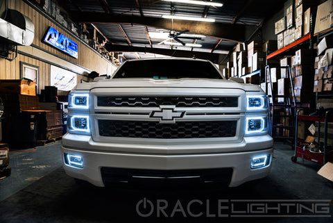 **Please note, this item is NOT a complete new assembly. Installing Fog Light halos on your vehicle will require baking your EXISTING Foglight assembly to open it. Please view our installation video by clicking the tab above before purchasing to make sure you are comfortable with this process. SMD Halo Kits by Oracle Lighting are taking the automotive aftermarket by storm. Installing a SMD Halo Light Kit on your vehicle will instantly change the entire appearance of your vehicle, especially at night. Oracle Halo Kits are of top quality. USA Made, No Inverter is required. Connect directly to 12V Source, such as your parking lights, for automatic operation or wire them to a switch for manual control. Oracle SMD LED Halo Kits use a rigid PCB with hundreds of leds on it, meaning the halo rings will not break and the light shines directionally forward. The rings have an industrial grade self adhesive backing, so they easily install inside the FogLight (once you complete the much more difficult process of opening your FogLight assembly). Approx. 100,000 hour lifetime. This LED Halo Light Kit fits 2007-2013 Chevy Silverado 1500 models and comes with the halo rings for both Fog Lights . Headlight halos are NOT included and are sold separately. Professional installation is recommended. If planning to install these yourself, please watch the install video to make sure you are comfortable with the process of baking and opening your foglights before purchasing. 1530-001 1530-002 1530-003 1530-004 1530-005 1530-333