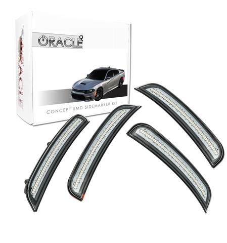 Oracle's Concept SMD Sidemarker lights are the perfect upgrade for your Charger! This complete "plug and play" replacement sidemarker set features high-powered SMD strips designed to give you that laser look! Dodge Challenger SideMarker Lights install in minutes and change the whole look of your Charger. You'll receive 4 new side marker lights (2 featuring amber LEDs for the front and 2 featuring red LEDs for the rear) The part number for this item is either 9880-019 and this complete set of 4 sidemarker lights fits 2015-2017 Dodge Charger Models.