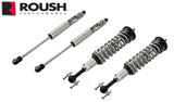 2015-2017 F-150 Fox 2.0 Complete Coilover Suspension Kit (Adjustable 0-2" Front Lift) by Roush Performance Preset with 2" of front leveling (adjustable from 0-2" of leveling), this USA MADE suspension kit for your F-150 is just what you need to take your truck to the next level of handling and off road performance. Nitrogen charged aluminum body coilover shocks with tuned performance springs in the front, work with 6061-T6 aluminum rear shocks (not adjustable) with internal floating pistons in the rear. Specific shock valving for F-150 trucks with upgraded wheel and tire combinations makes these a must have for anyone pushing their truck to the limit. This Kit contains: