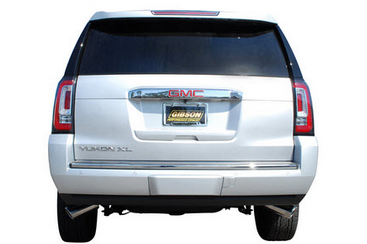 Gibson Performance Exhaust Systems are the perfect solution for your vehicle if you're looking to add a little style, sound, and horsepower to your vehicle. Gibson Exhausts are true bolt-on systems that look and sound great. Because the factory mounting points are utilized, there is no welding or guess work. Simply unbolt your boring and inefficient factory exhaust system and your new Gibson Performance Exhaust bolts into place. All Gibson Exhaust Systems are dyno tested to assure increased horsepower and produce more torque before they are released to the public. All exhausts are mandrel bent to minimize exhaust restriction. Average horsepower and torque gains are 10-15 range on stock (unmodified) vehicles, and even higher numbers for vehicles running other aftermarket performance parts. Gibson Exhaust Systems carry a limited lifetime warranty from the manufacturer. The part number for this item is Gibson 65676 and it fits 2015-2017 GMC Yukon XL 1500 (6.2 V8 Only) models. This exhaust features a 3.5" diameter that splits due dual 2 1/4" Diameter and DUAL 4" Tips, one exiting on each side of the vehicle behind the rear tires.. This is a Cat-Back exhaust, meaning all piping behind the cat is replaced.