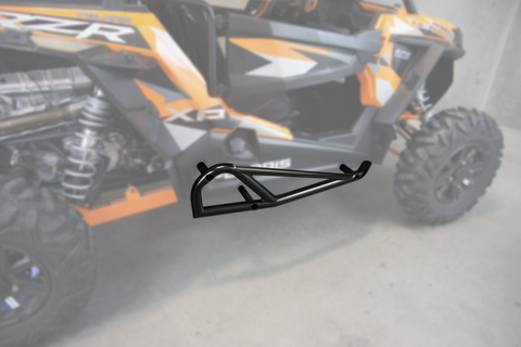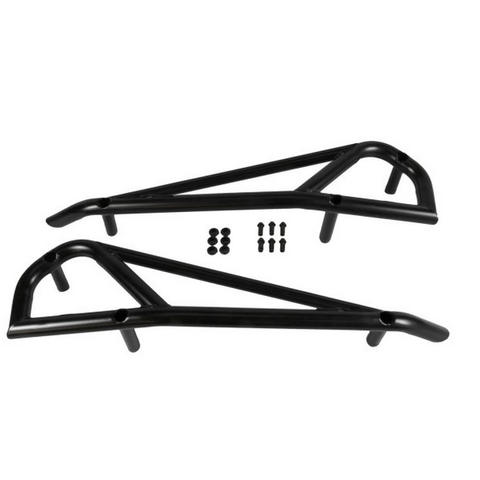 2015-2018 2 Seater Polaris RZR Allied Powersports Kickout Side Guards / Rock Sliders (Pair/Set) Whether you're looking for some serious protection or just want to give your Polaris a great look, Allied Powersports Kickout Side Guards / Rock Sliders are a great addition to your Polaris RZR. Made from 1 3/4" Steel tubing with a wrinkle black finish, these Rock Sliders bolt on in minutes to your existing rocker panels with no drilling required. Full ground clearance is maintained and the guards do not extend below the bottom of your RZR. The Polaris Rock Sliders/ Kick Out Guards, are kicked out 5" on each side and enable you to maintain momentum while taking fast corners since they will act as a buffer between your sides and rear wheels and obstacles you may encounter on the trails. The part number for this item is Allied Powersports 1004 and they fit 2015-2018 2 Seater Polaris RZR models.
