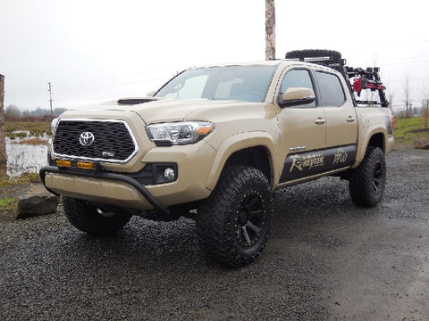 2016-2017 Toyota Tacoma Front Mount Bar w/ LED Light Mount by Revtek Suspension Revtek's Front Mount Bar for the Toyota Tacoma is a completely bolt on bar that is designed specifically with mounting LED Lights in mind. No drilling or cutting required! Featuring textured powdercoating for long lasting protection, this mount will work with most 30" LED Light Bars (LED lights are not included) or up to 4 individual LED Lights. The part number for this item is 20016 and it fits 2016-2017 Toyota Tacoma Trucks. LED Lights are sold separately.