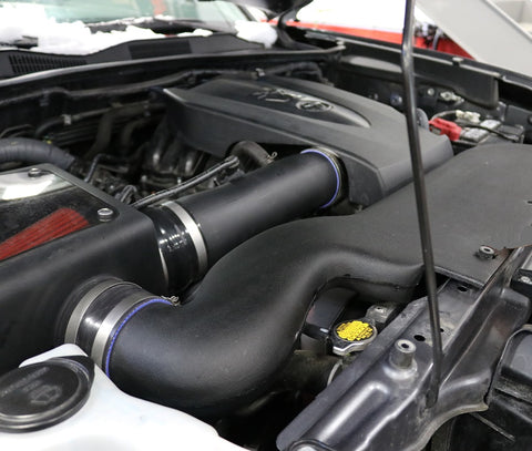 This Volant Cold Air Intake is not currently California street (CARB) approved. Cold air intake systems aren't created equal and savvy customers know it. This is why Volant Intakes are so popular with customers who know their air intakes. What makes Volant Cold Air Intakes different? First, Volant eliminates your restrictive factory airbox, filter, and intake tube. In its place goes the Volant Power Box. This box houses a high flow Volant Air Filter that is cleanable and reusable for as long as you own your vehicle. This superior design protects the filter and ensures that colder air is pulled instead of hotter (less dense) air from the engine bay, resulting in more horsepower and torque. Connected to the box is the Volant Ram Air Scoop, which turns your intake system into a functional ram air system to maximize horsepower and mileage gains, especially at higher speeds. Being an enclosed system, it keeps your engine quiet at cruising speeds, but allows it to still roar to life when you stomp the gas. This, coupled with the fact that Volant Cold Air Intakes incorporate your existing sensors, mean you won't have any check engine lights and they are safe for use on your vehicle. This "Factory Tuned" design means you won't need any tuning and makes this truly a bolt on system. Everything you need to install the unit comes with your Volant Cold Air Intake and you'll be able to install it with basic hand tools in an hour or less. Volant Intakes all are backed by a lifetime warranty. Volant Cold Air Intake Systems exceed OE standards and as a result will not void any existing factory warranties that you may have. Additionally, you'll enjoy increased horsepower and torque, as well as improved throttle response. Fuel economy gains, especially during freeway conditions, are commonly achieved helping the unit to pay for itself over time. The part number for this Volant Complete Ram Air Intake System is 38235 (or 382356 if you choose the dry filter) and it fits 2016-2018 Toyota Tacoma 3.5 models.