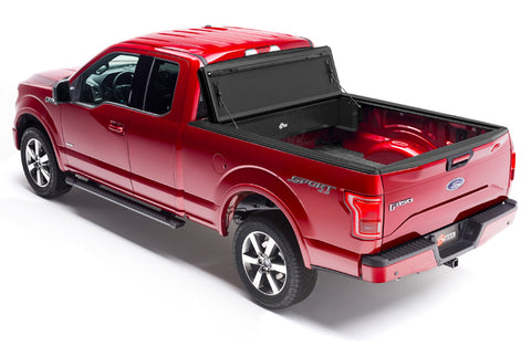 The BakFlip MX4 Truck Bed Tonneau Cover by BAK Industries is one of the most versatile truck bed covers available in the marketplace today. Made from 4 built to last aluminum panels featuring a matte black finish and premium foam core, the BakFlip MX4 hard tonneau cover offers you a dry and secure place to store your cargo, while easily folding back, including a special standing position to offer access to the entire truck bed (view our video demo for a visual demonstration). The BakFlip MX4 installs quickly and easily with no drilling required. The BakFlip MX4 has a weight rating of 400 lbs (evenly distributed), meaning you dont have to worry about sitting something heavy on it; you can even stand/sit on it if you want to. Built to last, it can handle any kind of climate and offers a sleek flush mount that not only looks good, but enables you to improve fuel economy by 10% or more due to increased aerodinamics. In other words, not only will the BakFlip MX4 Truck Bed Cover look good and protect your cargo from the elements, it will pay for itself over time. What more could you ask for from a Tonneau Cover?
