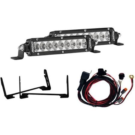 2017-2018 Ford F-150 Raptor Grille Light Bar Kit by Rigid Industries The Rigid Ford Raptor Grille Light Kit features two 6" SR-Series LED Lights and gives your Raptor an aggressive new grille while adding the visibility and clarity that comes only with RIGID Industries lights. This light kit comes with everything you need to install 2 SR-Series lights in the grille light locations and is backed by Rigid Industries' limited lifetime warranty. The part number for this item is Rigid 41612.
