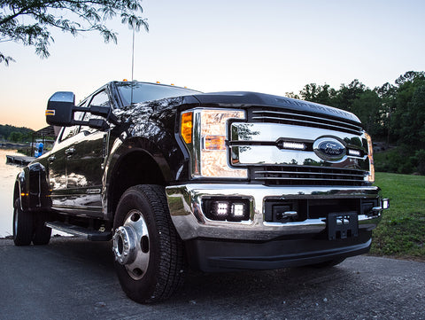 2017-2018 Ford F-250 F-350 SuperDuty Dual Fog Light Mounting Brackets by Rigid Industries Use this pair of mounts to mount 4 Rigid D Series lights in your OE fog light location. Lights are sold separately. Made from 100% stainless steel and coated with a UV + abrasion resistant polyester based coating to ensure years of use in extreme off-road conditions. These mounts are backed by the Rigid limited lifetime warranty. All necessary hardware & mount instructions are included. The part number for this item is Rigid Industries 41617 and it fits 2017-2018 Ford F-250 F-350 SuperDuty models.