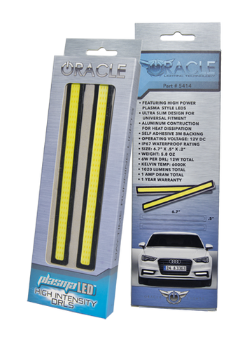 7" White Plasma LED Light Strips by Oracle Lighting are perfect for creating DRLs, extra reverse lights, trunk lights, or accenting your vehicle. The possibilities are endless. Sold as a pair, each 7" Plasma Strip is encased in an aluminum housing with a 3M adhesive backing and is powered with a simple 2 wire (12 volt + and -) hookup. The part number for this item is 5414-001.