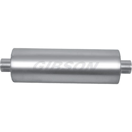 Gibson High Performance Superflow Mufflers deliver the powerful "big block" sound at the tailpipe with more usable pulling power and torque! Gibsons superior design reduces cab noise (drone) without sacrificing power or sound quality . By baffling and chambering their mufflers, (vs cheaper packed or screened mufflers - nothing to blow out) Gibson mufflers promote better volume efficiency with unrestricted flow. Even better, the added thickness of the muffler case and heavy duty tubing, along with a superior stainless steel design, all contribute to a long and productive life for your new performance muffler.