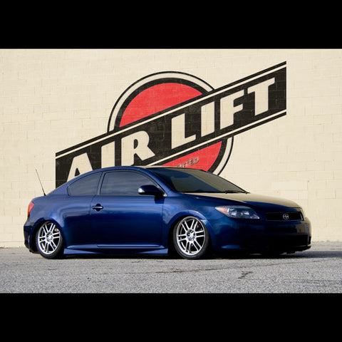Height Adjustment Range / Lowering Capability: Up to 5" Air Lift Performance Suspension Kits allow you to improve your handling and take complete control of your suspension. Want to have that slammed look, but still be able to drive to work? Air Lift Performance Suspension Kits give you options and are far easier to deal with than coilovers. Coilovers are harder to adjust and just don't have the same versatility as air. Go from slammed to going to work. After work, a simple adjustment makes those wheel well gaps disappear in seconds. Air Lift Performance Suspension Kits are air-over shock kits. They are designed to give you maximum performance thanks to a 9 way adjustable damping system that was previously only found on extremely high end coil overs. Don't be one of those people who destroys their undercarriage because they don't have the abilities that Air Lift kits do, not to mention the smoother ride. Air Lift Performance Suspension Kits include a 1 year unlimited mileage warranty. The part number for this item is 75587 and it fits 2004-2010 Scion tC . This is a FRONT Kit.