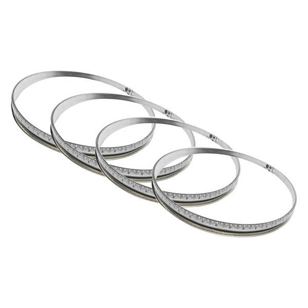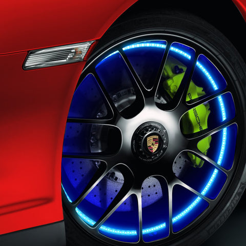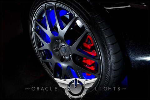 LED Wheel Light Rings (Set of 4) by Oracle are a great way to grab attention to those nice wheels you put on your vehicle! Also referred to as LED Rim Lights by some, Oracle LED Wheel Lights mount on the back of your brake assembly around the brake rotor dust shield. These fit on vehicles with up to a 15" Rotor (most vehicles). The ring can be enlarged to fit up to a 17" Rotor for an additional fee above. Most small cars can easily use the standard size and will have room to spare. To be safe you can measure your brake rotor from edge to edge. Oracle Wheel kits are exterior rated for both heat and water and will last under the stress of being in your wheel well unlike some of the cheap alternatives. Their universal design allows them to fit on virtually any vehicle. All required mounting hardware (including a switch) and instructions are included in the kit. Sold as a complete set of 4 pieces one kit is enough to do your entire vehicle. Available in several colors (choose above) as well as a color changing kit with a remote control (Extra Charge). The diameter of each ring is 15.5" (can be enlarged to 17.5" above for an additional charge) The part number for these Oracle BLUE Wheel Lights is 4215-002