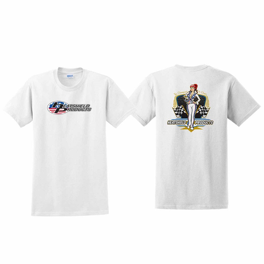 Get your Eve on if you dare! This T-shirt was inspired by our love for America and also to pay homage an American icon the original daredevil. Featuring our Heatshield Patriot logo out front, and Eve the daredevil pinup girl on back.
