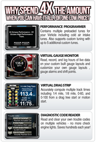 * Virtual Drag Tree functions include 0-60 times, 1/4 mile times and more!