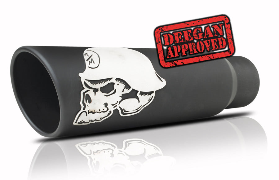 The Metal Mulisha Exhaust Tip by Gibson Performance Exhaust is a ceramic coated black exhaust tip with the famous skull logo featured on the side. The edge of the Metal Mulisha Exhaust tip is rolled for an improved look. Simple bolt on installation. No Drilling Required. Inlet: 3.50" Tip Outlet: 8" Overall Tip Length: 18"