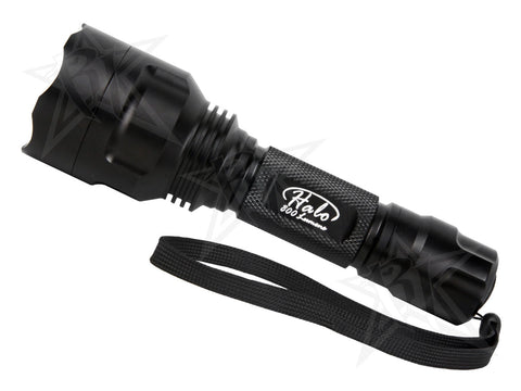 The Rigid Industries LED Halo Torch Flashlight is one of the most powerful, most versatile LED flashlights on the market today. This flashlight offers five modes of operation - High, Medium, Low, Flasher, and SOS. The Halo 800 LED Flashlight Torch combines the latest in US-made LED's with a machined aluminum reflector to achieve extremely high output in a compact package. The Halo 800 LED Flashlight Torch has a wide beam for area illumination and, when set to High, it produces 800 raw lumens with a focused center that projects 1,000 feet. At roughly the same size as a Mini Maglite, the Halo 800 LED Flashlight Torch has almost 10 times more light output. The Halo 800 LED Flashlight Torch can run for almost 3 hours on a full charge and is impact and water resistant. This Halo 800 LED Flashlight Torch kit includes a lithium ion rechargeable battery and both a 110V wall charger and an AC/DC 12V charger for your vehicle. The part number for this item is Rigid Industries 30120