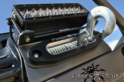 Hawse Fairlead Mount w/ 10" Light Bar Mount by Poison Spyder Customs Poison Spyder Hawse Fairlead Light Mounts provide winch-equipped vehicles with a mounting point for a 10" LED Light bar, such as the Rigid Industries E or SR series 10" LED Light Bar The Hawse Fairlead Light Mount can be installed behind most Hawse-type winch fairleads, and is designed to accept most aftermarket auxiliary lights. This may be beneficial for Jeeps equipped with aftermarket bumpers such as Poison Spyder's Trail Stinger, which may displace auxiliary lights which were previously bumper-mounted. The Mount is CNC laser-cut from 3/16" plate steel and powder-coated a textured black finish for long-lasting great looks and corrosion resistance. Installation is extremely simple, requiring only simple tools. Complete installation instructions are included The part number for this item is Poison Spyder 45-28-R10.