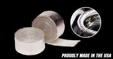 Heatshield Products' developed Heat Shielding tape to help you accommodate those specialty heat shielding needs! This heat shield tape reflects radiant heat away from wires, lines, cables, hoses, and more! It is an excellent way to insulate components without disassembly, or use it as a means to hold other thermal insulation in place. It is also excellent for quick "on the go" solution to heat problems. Our heat shield tape is a must have for your race track tool box! Durable cloth construction makes it longer lasting and more rugged than similar products. This reflective heat shield tape withstands 1100degreesF continuous radiant heat and 500degreesF of direct contact. The reflective heat shield tape cuts easily and installation is simple with our high temperature self adhesive backing. 1.5 Inches wide and 3 feet long Cuttable with a utility knife or heavy duty scissors.