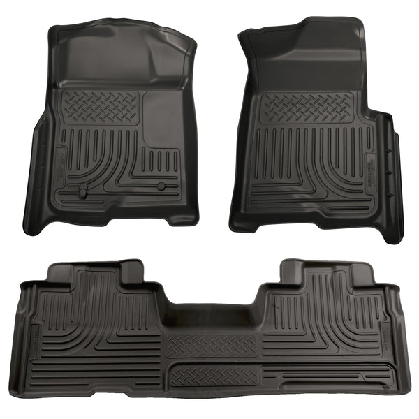 If youre looking for a set of Floor Liners or Cargo Liners that are superior to the competition, youve come to the right place. Husky Floor Liners and Cargo Liners, made by Husky Liners, offer a superior fitment because they designed specifically for your vehicle. Because of this, Husky Molded Floor Liners and Cargo Liners fit better, look better, and offer superior performance. Youll get a set of liners that are durable enough to stand up to the elements. Husky's deep troughs will hold water, soda, dirt, mud, or whatever else you spill or step onto them. The raised perimeter around Husky floor mats contain spills and debris while the embossed ribbing keeps your feet elevated and out of the water, mud, and dirt. When it is time to clean your Husky Floor Mats, theyll easily rinse clean with a garden hose. Additionally, unlike universal all weather floor mats, Husky All Weather Floor Mats will install perfectly every time and with ease since they are vehicle specific. Husky Liners come complete with their Sta-Put mounting system that holds the floor liners in place and keep them from shifting. Because Husky Floor Mats are made from highly durable thermoplastic, they will stand up to the weather and any additional beating you put them through. Sold as a set that will cover both sides of the front AND Back Seats, your Husky Floor Liners are backed by a lifetime warranty. You can rest assured that theyll be hard at work for as long as you own your vehicle. The part number for this item is 98341(Black) 98342(Grey) or 98343(Tan) (depending on your color choice) and this PAIR of Front Floor Liners AND a Single Piece Back Seat Liner fits 2009-2014 Ford F150 Super Cab (No Manual Transfer Case) Models.