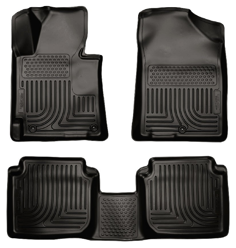 If youre looking for a set of Floor Liners or Cargo Liners that are superior to the competition, youve come to the right place. Husky Floor Liners and Cargo Liners, made by Husky Liners, offer a superior fitment because they designed specifically for your vehicle. Because of this, Husky Molded Floor Liners and Cargo Liners fit better, look better, and offer superior performance. Youll get a set of liners that are durable enough to stand up to the elements. Husky's deep troughs will hold water, soda, dirt, mud, or whatever else you spill or step onto them. The raised perimeter around Husky floor mats contain spills and debris while the embossed ribbing keeps your feet elevated and out of the water, mud, and dirt. When it is time to clean your Husky Floor Mats, theyll easily rinse clean with a garden hose. Additionally, unlike universal all weather floor mats, Husky All Weather Floor Mats will install perfectly every time and with ease since they are vehicle specific. Husky Liners come complete with their Sta-Put mounting system that holds the floor liners in place and keep them from shifting. Because Husky Floor Mats are made from highly durable thermoplastic, they will stand up to the weather and any additional beating you put them through. Sold as a set that will cover both sides of the front AND Back Seats, your Husky Floor Liners are backed by a lifetime warranty. You can rest assured that theyll be hard at work for as long as you own your vehicle. The part number for this item is 98891(Black) and this PAIR of Front Floor Liners AND a Single Piece Back Seat Liner fits 2011-2013 Hyundai Elantra Models.