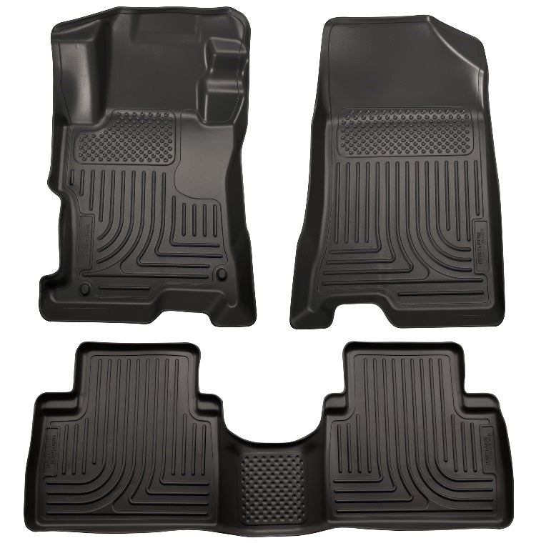 If youre looking for a set of Floor Liners or Cargo Liners that are superior to the competition, youve come to the right place. Husky Floor Liners and Cargo Liners, made by Husky Liners, offer a superior fitment because they designed specifically for your vehicle. Because of this, Husky Molded Floor Liners and Cargo Liners fit better, look better, and offer superior performance. Youll get a set of liners that are durable enough to stand up to the elements. Husky's deep troughs will hold water, soda, dirt, mud, or whatever else you spill or step onto them. The raised perimeter around Husky floor mats contain spills and debris while the embossed ribbing keeps your feet elevated and out of the water, mud, and dirt. When it is time to clean your Husky Floor Mats, theyll easily rinse clean with a garden hose. Additionally, unlike universal all weather floor mats, Husky All Weather Floor Mats will install perfectly every time and with ease since they are vehicle specific. Husky Liners come complete with their Sta-Put mounting system that holds the floor liners in place and keep them from shifting. Because Husky Floor Mats are made from highly durable thermoplastic, they will stand up to the weather and any additional beating you put them through. Sold as a set that will cover both sides of the front AND Back Seats, your Husky Floor Liners are backed by a lifetime warranty. You can rest assured that theyll be hard at work for as long as you own your vehicle. The part number for this item is 98811(Black) 98813(Tan) (depending on your color choice) and this PAIR of Front Floor Liners AND a Single Piece Back Seat Liner fits 2011-2013 Kia Sorrento (Auto Trans Only) Models.