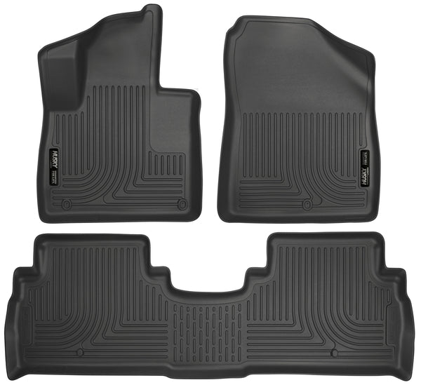 If youre looking for a set of Floor Liners or Cargo Liners that are superior to the competition, youve come to the right place. Husky Floor Liners and Cargo Liners, made by Husky Liners, offer a superior fitment because they designed specifically for your vehicle. Because of this, Husky Molded Floor Liners and Cargo Liners fit better, look better, and offer superior performance. Youll get a set of liners that are durable enough to stand up to the elements. Husky's deep troughs will hold water, soda, dirt, mud, or whatever else you spill or step onto them. The raised perimeter around Husky floor mats contain spills and debris while the embossed ribbing keeps your feet elevated and out of the water, mud, and dirt. When it is time to clean your Husky Floor Mats, theyll easily rinse clean with a garden hose. Additionally, unlike universal all weather floor mats, Husky All Weather Floor Mats will install perfectly every time and with ease since they are vehicle specific. Husky Liners come complete with their Sta-Put mounting system that holds the floor liners in place and keep them from shifting. Because Husky Floor Mats are made from highly durable thermoplastic, they will stand up to the weather and any additional beating you put them through. Sold as a set that will cover both sides of the front AND Back Seats, your Husky Floor Liners are backed by a lifetime warranty. You can rest assured that theyll be hard at work for as long as you own your vehicle. The part number for this item is 98691(Black) and this PAIR of Front Floor Liners AND a Single Piece Back Seat Liner fits 2016 Kia Sorrento Models.