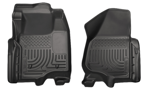 If youre looking for a set of Floor Liners or Cargo Liners that are superior to the competition, youve come to the right place. Husky Floor Liners and Cargo Liners, made by Husky Liners, offer a superior fitment because they designed specifically for your vehicle. Because of this, Husky Molded Floor Liners and Cargo Liners fit better, look better, and offer superior performance. Youll get a set of liners that are durable enough to stand up to the elements. Husky's deep troughs will hold water, soda, dirt, mud, or whatever else you spill or step onto them. The raised perimeter around Husky floor mats contain spills and debris while the embossed ribbing keeps your feet elevated and out of the water, mud, and dirt. When it is time to clean your Husky Floor Mats, theyll easily rinse clean with a garden hose. Additionally, unlike universal all weather floor mats, Husky All Weather Floor Mats will install perfectly every time and with ease since they are vehicle specific. Husky Liners come complete with their Sta-Put mounting system that holds the floor liners in place and keep them from shifting. Because Husky Floor Mats are made from highly durable thermoplastic, they will stand up to the weather and any additional beating you put them through. Sold as a pair that will cover both sides, your Husky Floor Liners are backed by a lifetime warranty. You can rest assured that theyll be hard at work for as long as you own your vehicle. The part number for this item is 18701(Black) 18702(Grey) or 18703(Tan) (depending on your color choice) and this PAIR of Front Floor Liners fit 2012-2015 Ford F250/F350/F450 SuperDuty (Crew Cab) (w/out Manual Transfer Case) (With a drivers side foot rest) models.