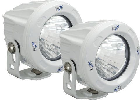 The Vision X 3.74 round XIL-OPR160WKIT off road light features 10 Watt LED technology, a flood beam pattern offers you a wide amount of light with not as much distance, and white powder coated die-cast aluminum housing. The XIL-OPR160WKIT comes standard with an Extended warranty, and multi-volt 9-32V DC input. This light weighs 1.25 pounds and offers a mounting depth of 2. It offers proprietary IRIS reflector technology and Prime Drive for enhanced reliability and output.