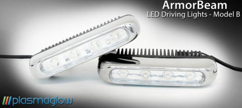 PlasmaGlow Armor Beam Fog/ Driving lights bring bright white LED light onto your horizon and give you that sport/luxury look and feel. PlasmaGlow ArmorBeam LED Driving Lights are fully adjustible and universal, meaning they will fit almost any vehicle. They include mounting brackets, wiring, instructions, and a one year warranty. You'll get everything you need to install your Armor Beam LED Fog / Driving lights by Plasmaglow. Price is for a PAIR Specs: