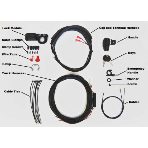 This item will work on any FRAMELESS, BONDED GLASS rear door with a 1 1/8" center handle hole. Integrated Remote Keyless Entry Kit. Upgrade your Truck Cap or Tonneau with this simple clip on kit. The kit includes heavy duty wire harness with in-line fuse, two piece wire harness design with quick disconnects for easy removal of truck cap or tonneau cover, includes all hardware and wiring instructions for installation. Fits any Truck Cap with an 1-1/8 center hole and rotary latches. Kit comes with new handle for simple installation!