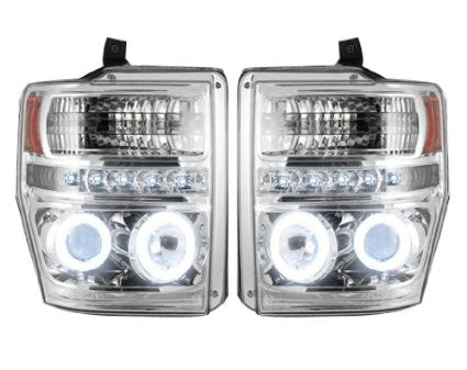 Lets face it. Your factory headlights are plain, boring, and begging to be replaced. You see some of these new cars with brilliant looking projector headlights. You wonder why your truck came with the basic run of the mill headlights you ended up with. This is where RECON comes to the rescue. Recon Projector headlights will make your vehicle stand out from the crowd. RECONs Projector Headlights were designed by the engineers at RECON, who are truck enthusiasts themselves. They know what your factory headlight assemblies are lacking, and theyve come up with unique solutions that give a luxuriously sporty look, and set your vehicle apart from the rest of the pack. RECON Projector Headlights are 50 state street legal and manufactured to the highest standards, meaning that you wont be sacrificing durability or functionality when running your RECON Projection Headlights. The part number for these RECON Projector Headlights is 264196clcc and they fit 2008-2010 Ford Superduty F250/F350/F450/F550 models.