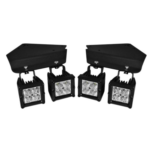 The 264512RPTR LED Driving Light / Fog Light Kit is a must have for Raptor owners. Included in this kit is everything you need to convert your boring fog lights into major light emiting powerhouses. 4 1900 Lumen LED Fog Lights totaling 80 watts and 7600 lumens are included (each side will get one flood pattern and one spot pattern for optimal lighting effect). Custom brackets mount the lights into your existing front corner bumper openings and use factory mounting points. No drilling required! Wiring harnesses are also included for a true plug and play installation. The part number for this item is 264512RPTR and it fits 2011-2014 Ford F150 Raptor trucks.