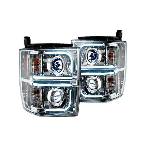Featuring OLED Halos and Daytime Running Lights! Lets face it. Your factory headlights are plain, boring, and begging to be replaced. You see some of these new cars with brilliant looking projector headlights. You wonder why your truck came with the basic run of the mill headlights you ended up with. This is where RECON comes to the rescue. Recon Projector headlights will make your vehicle stand out from the crowd. RECONs Projector Headlights were designed by the engineers at RECON, who are truck enthusiasts themselves. They know what your factory headlight assemblies are lacking, and theyve come up with unique solutions that give a luxuriously sporty look, and set your vehicle apart from the rest of the pack. RECON Projector Headlights are 50 state street legal and manufactured to the highest standards, meaning that you wont be sacrificing durability or functionality when running your RECON Projection Headlights. The part number for these RECON Projector Headlights is 264296clc and they fit 2015-2017 Chevy Silverado 2500 / 3500 (Clear/Chrome) models.