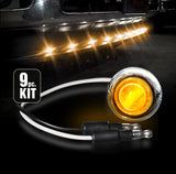 The Recon Universal LED Front Lower Air Dam Light Kit is the perfect addition to your truck. This 9 piece set of lights comes with all required wiring and installation instructions. Some minor drilling is required for installation. The part number for this item is 264227AMCL and this 9 piece set features Clear lenses with Chrome bezels and Amber LEDs.