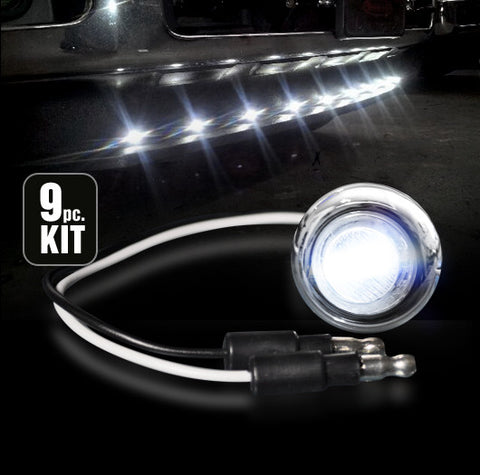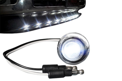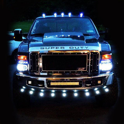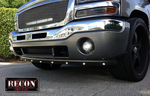The Recon Universal LED Front Lower Air Dam Light Kit is the perfect addition to your truck. This 9 piece set of lights comes with all required wiring and installation instructions. Some minor drilling is required for installation. The part number for this item is 264227WHCL and this 9 piece set features clear lenses with chrome bezels and white LEDs.