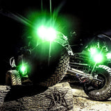 The A Series PRO LED Rock Light Kit by Rigid Industries is the perfect solution for rock crawlers, Jeeps, Off-Road Vehicles, and trail and dune riders. Each Rock light kit includes extremely versatile, measuring 3 wide by 1.625 tall and 0.5 thick LED Lights. Custom downward angled rubber pads are included for easy and consistent downward angled installation installation Each A-Series High Powered LED Light in the kit encases 3 LEDs with an output of 400 raw lumens. They only draw 0.3 amps and 4 watts. Each LED Light has an extra long 15 lead making wiring a breeze. A distribution block and wiring harness complete the kit. The part number for this item is Rigid Industries 400273
